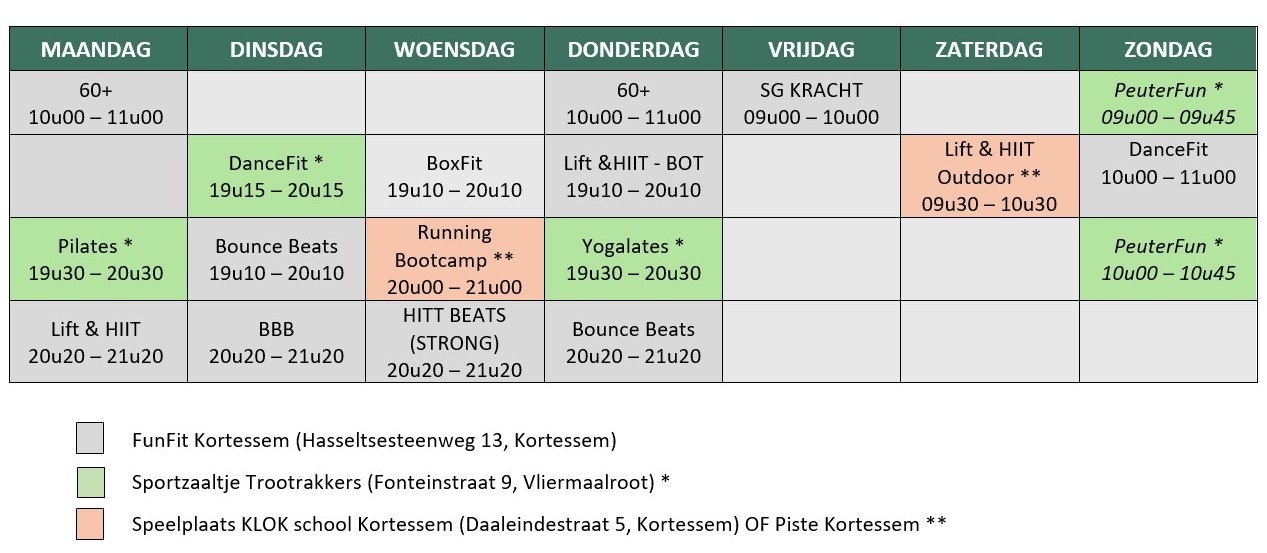LET OP: deze les gaat door in het sportzaaltje van de lagere school te Vliermaalroot (Fonteinstraat 9 3721 Vliermaalroot)